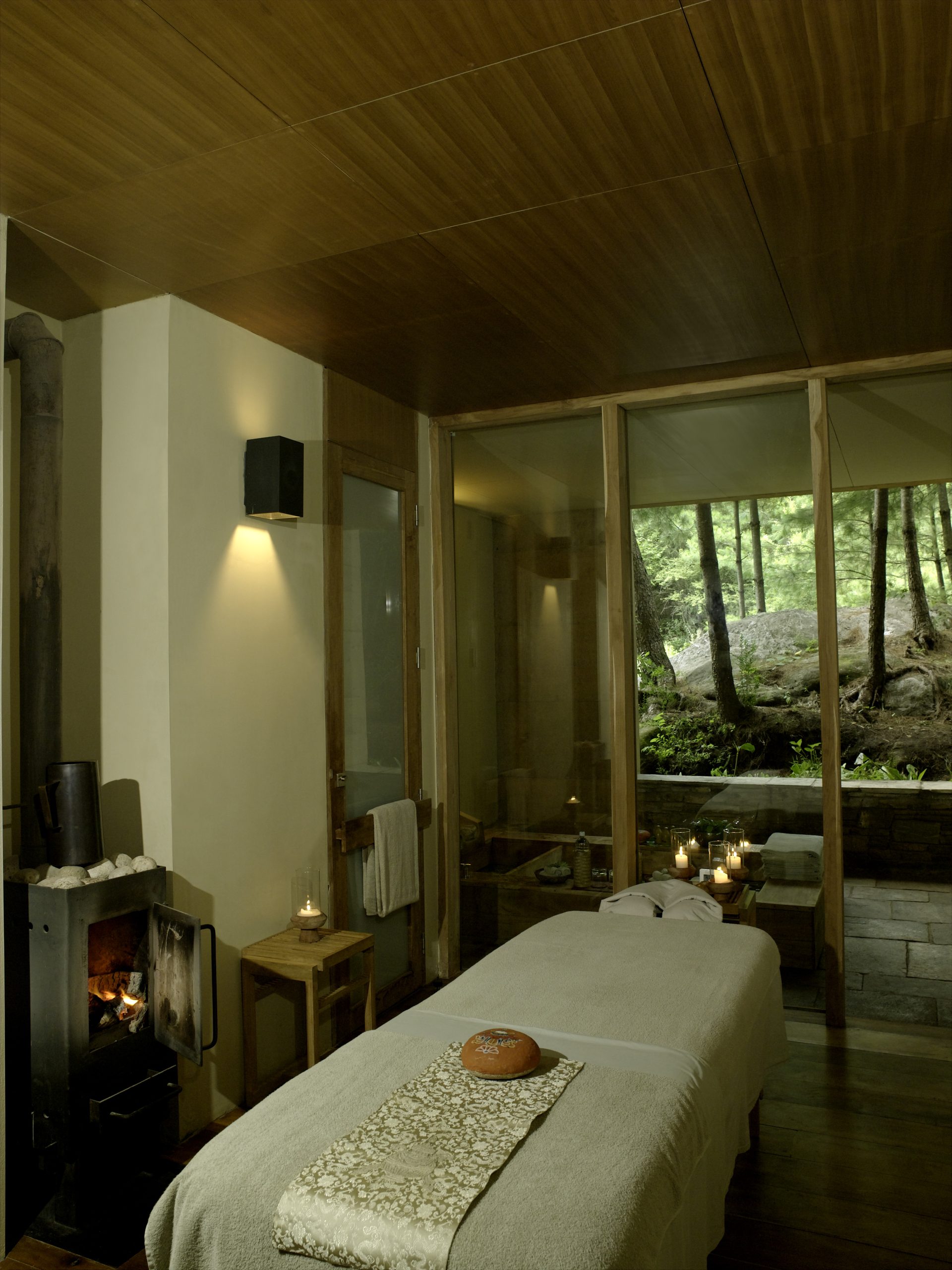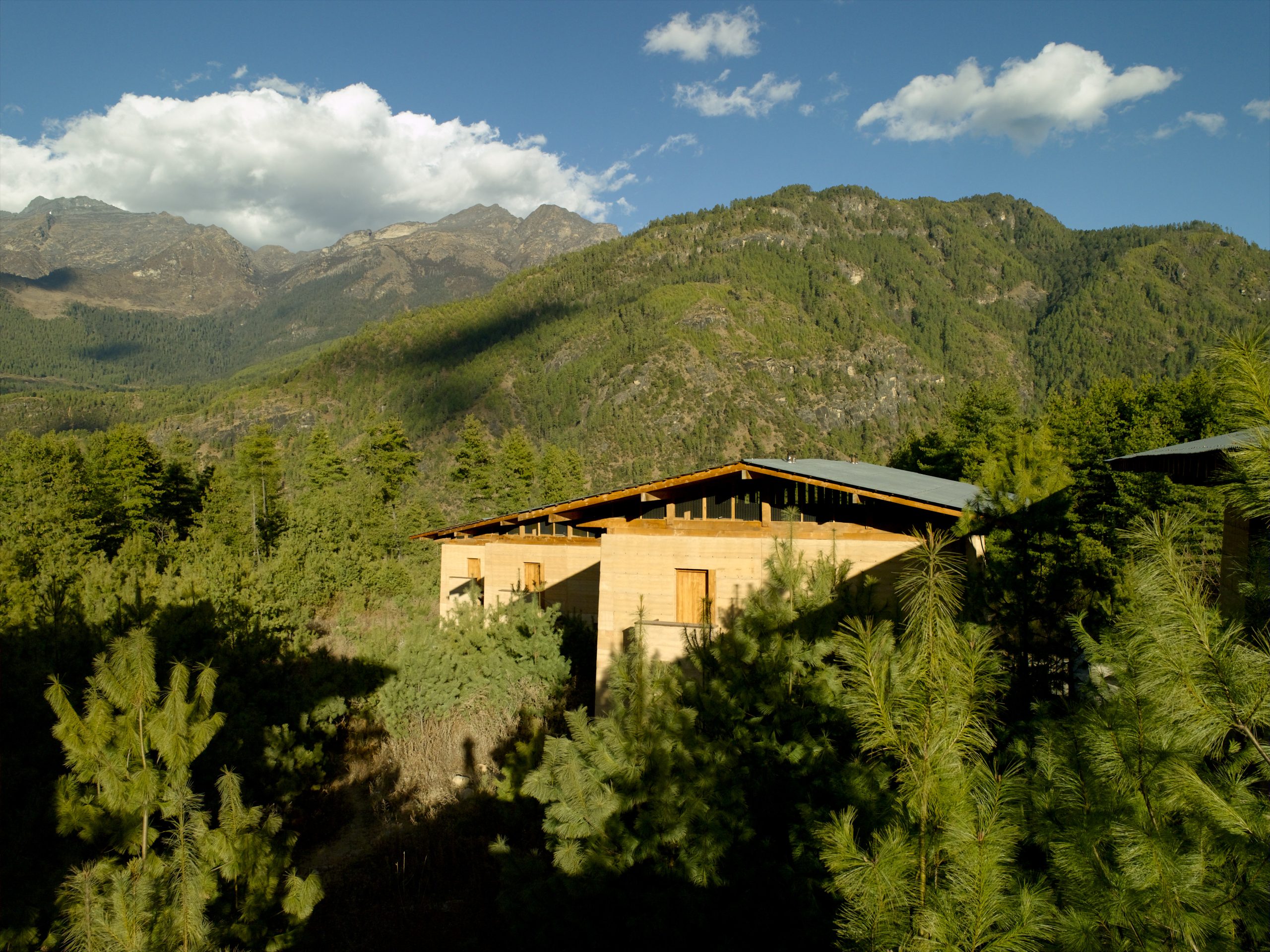 Located 30 minutes from the Paro International airport and a short stroll away from the dominating Paro Dzong, this Amankora lodge is a 24-suite pine forest retreat, which contrasts the rustic with the contemporary. The resort’s architecture features natural rammed-earth walls, gently sloping roofs, and wood-paneled interiors. The suites provide king-size beds, a traditional bukhari (wood-burning stove), and a large terrazzo-clad bath. The lodge facility includes a living room, dining room, library, and outdoor terrace, all warmed by fireplaces. A welcome return from challenging treks is the Spa that overlooks the surrounding blue pine forest and herb garden. A glass-walled sauna, treatment rooms with hot stone baths, yoga and meditation room are among the spa’s facilities.