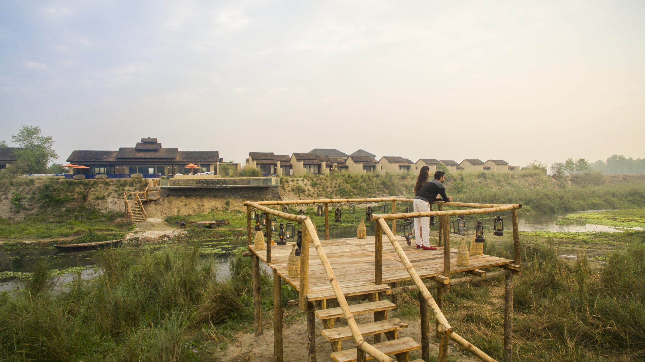 Meghauli Serai, a luxurious jungle retreat by Taj Safaris, lies on the banks of the majestic Rapti River, bordering Chitwan National Park. This exquisite lodge offers a rare blend of wilderness and opulence, with its elegantly designed rooms and villas providing uninterrupted views of the river and the lush forest beyond.